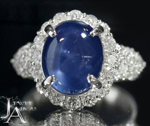 この神秘的な美しさはスターサファイアならではでございます! ダイヤモンドも非常にクリアな輝きを放っております。